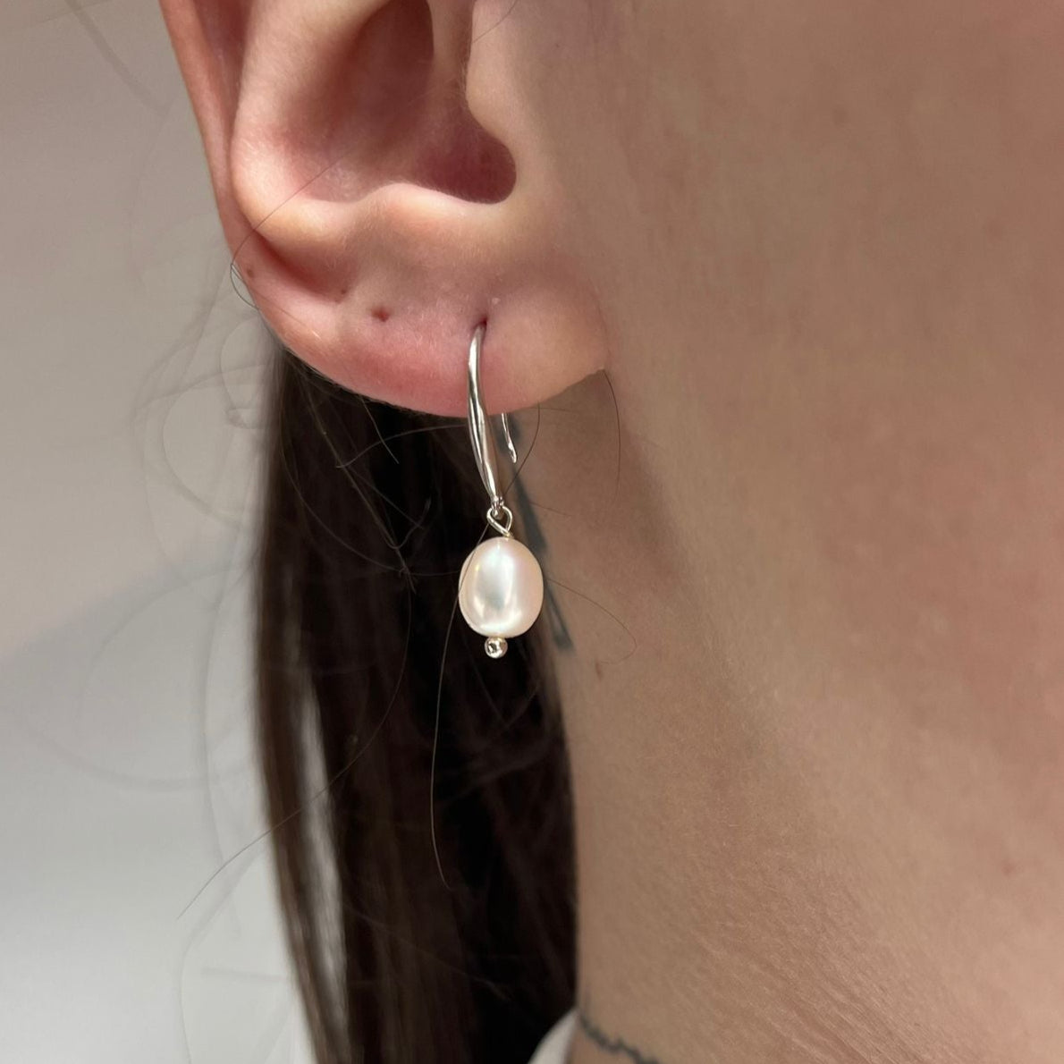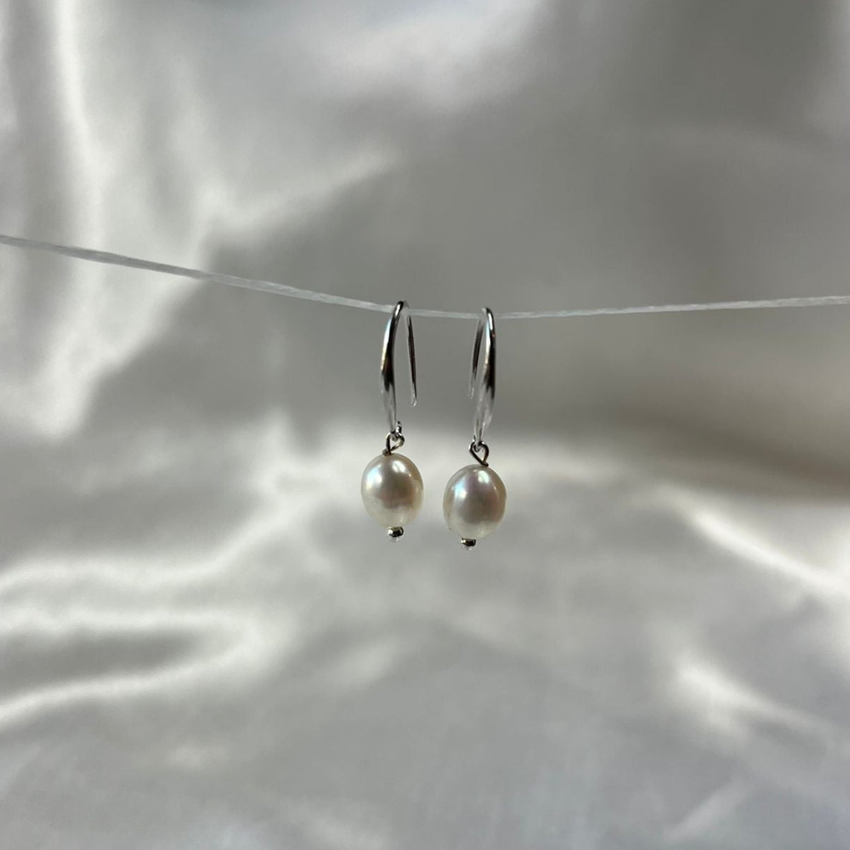 Hermosas caravanas en base plata 925 y perlas de cultivo en forma gota de tamaño 6 milímetros.