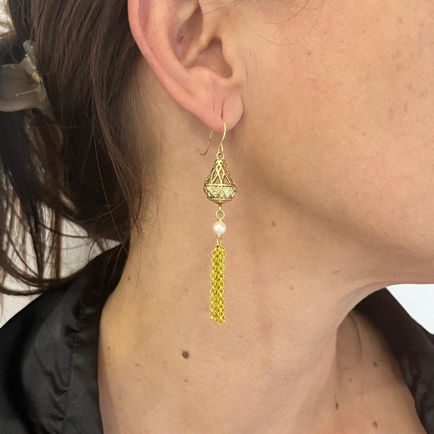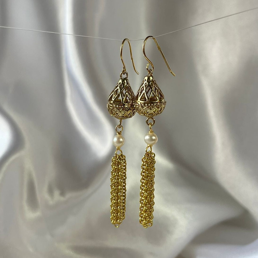 Caravanas en material acero con baño dorado y perla de 4 milímetros.