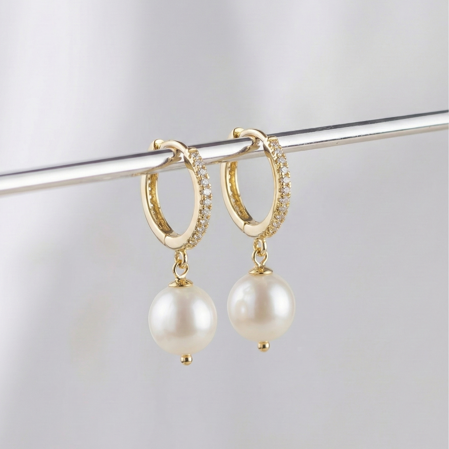 Caravanas de cultivo con strass con circonia perlas de cultivo redondas 9mm blancas