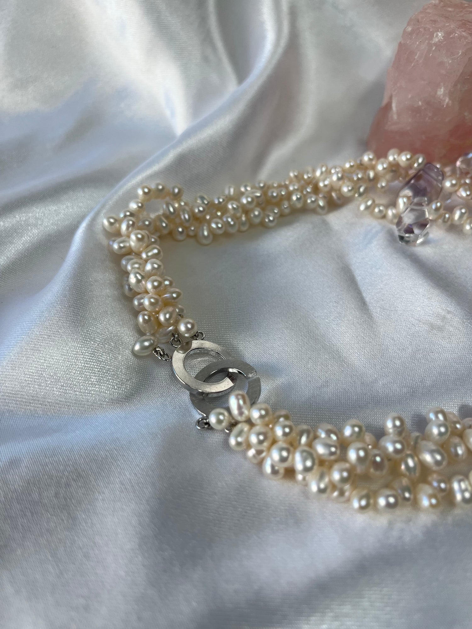¡NUEVO!, hermoso collar en perlas perforadas 3/7 de 3 vueltas. Junto con cristal y amatista.
